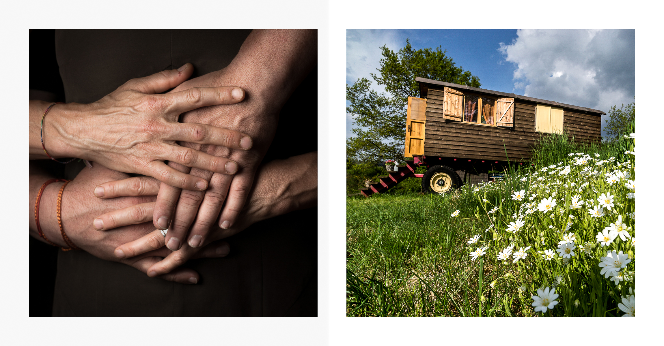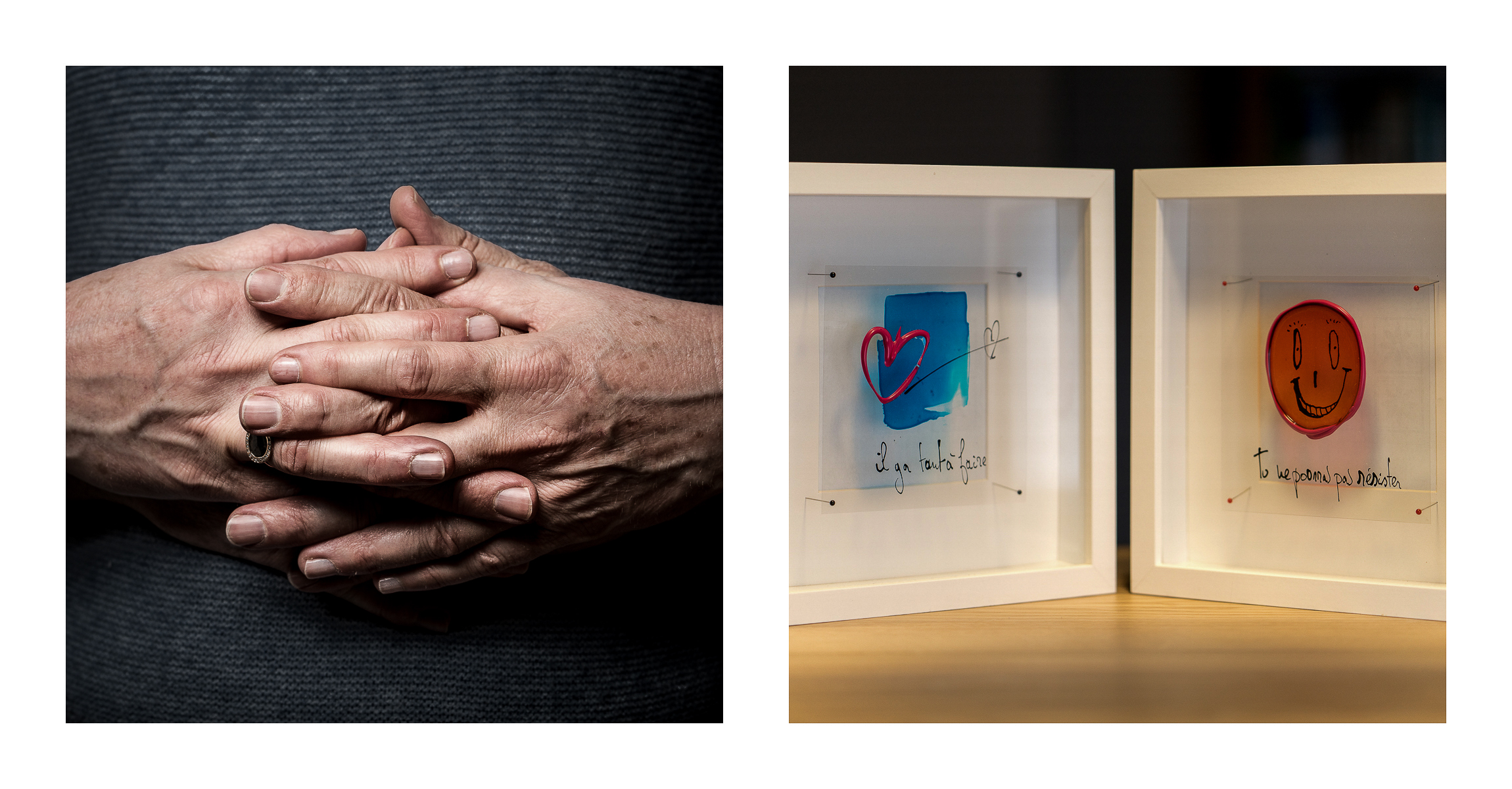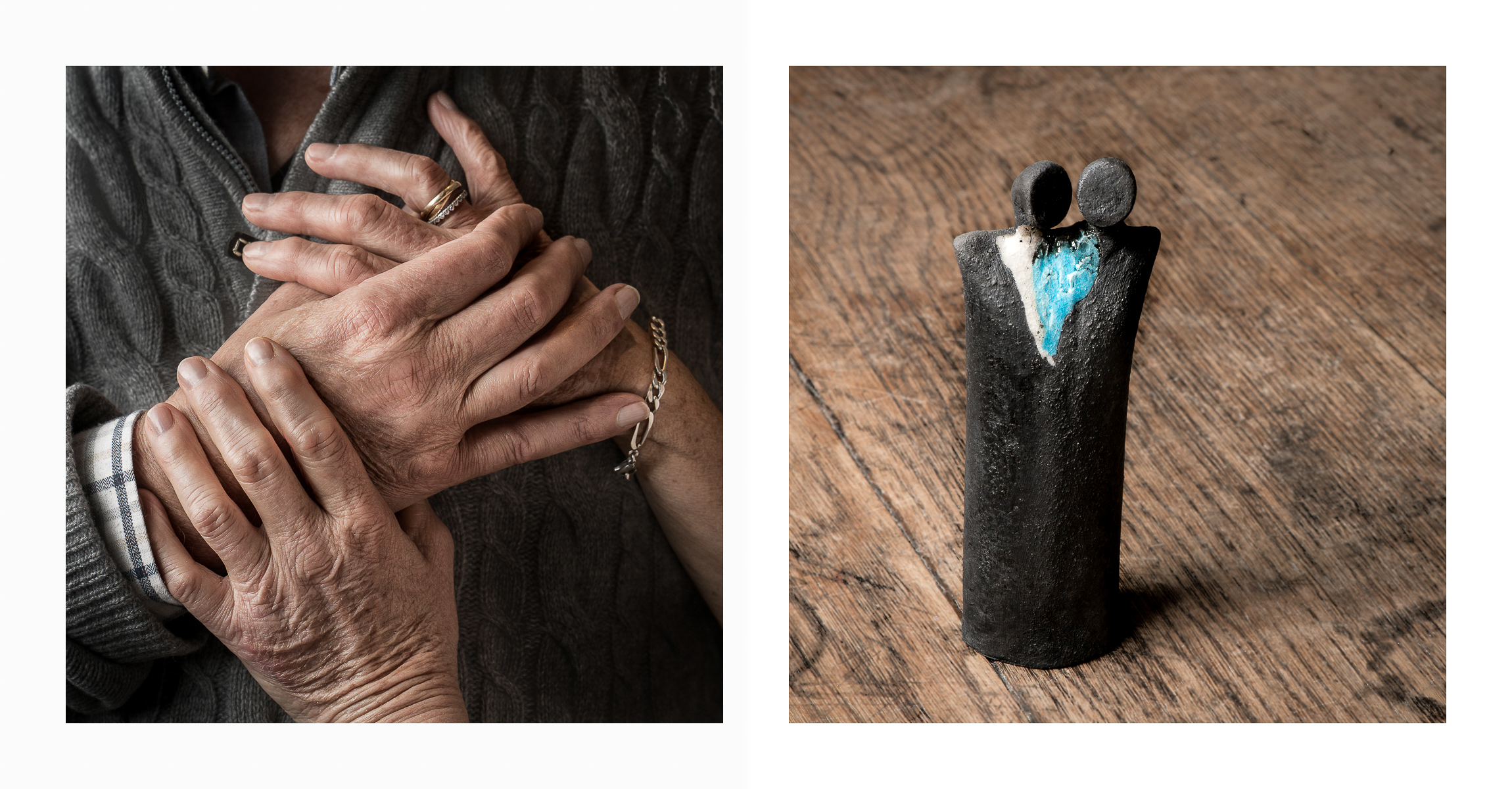 Portraits de couples à partir de leurs mains et d’un objet ou endroit plein de souvenirs.