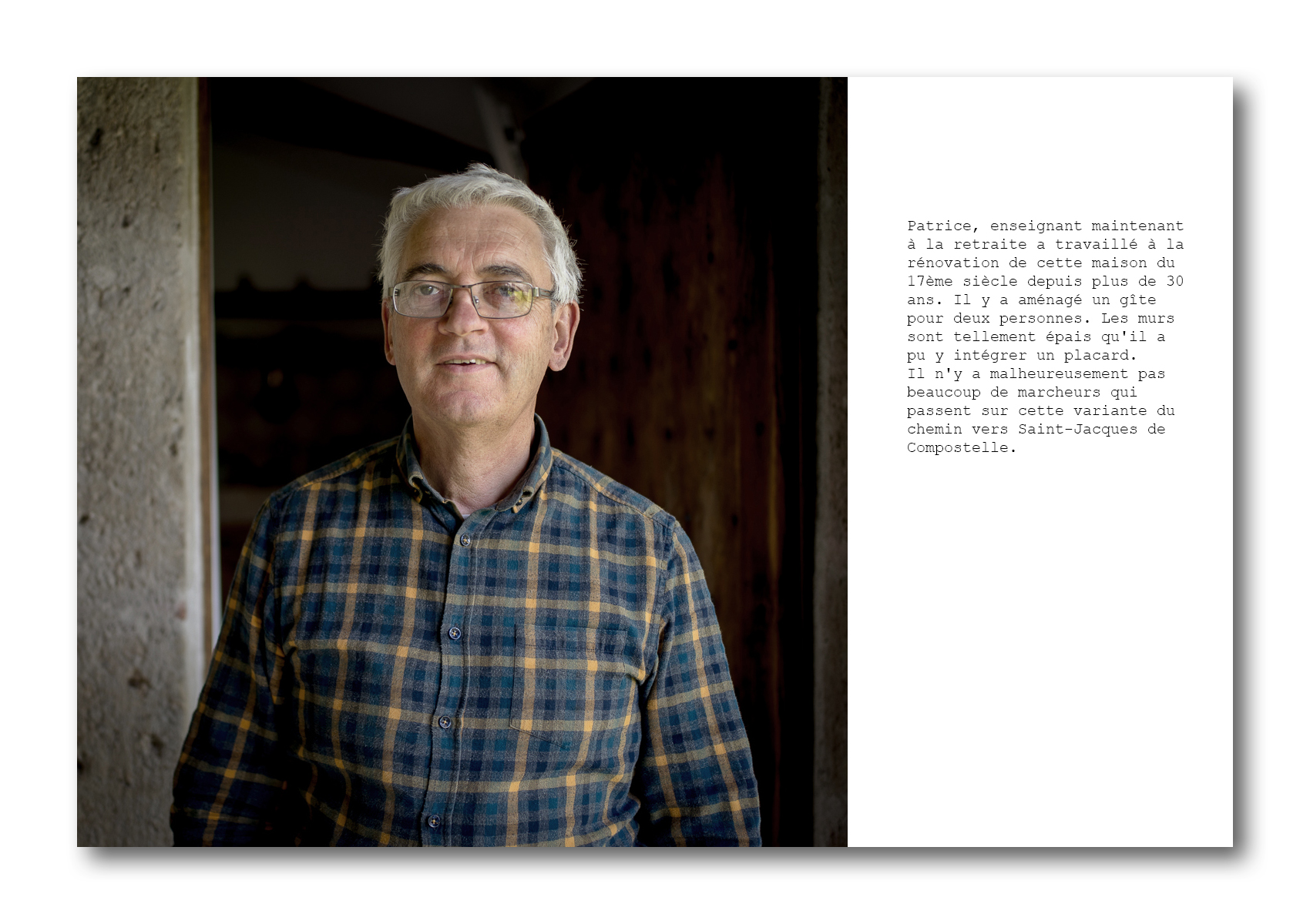 Avec ces images, j’ai voulu garder trace de quelques-unes de ces brèves et belles rencontres d’un soir que j’ai faites entre Vézelay et Saint-Jacques de Compostelle en 2018 et 2019.